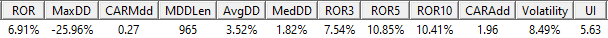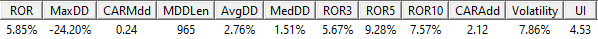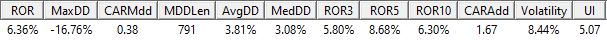Hey that looks pretty good! 6.33% returns with 11.13% drawdown, that way out performs any of the traditional static All Weather portfolios we looked at in the part one of this article series. Some may say 6% return isn’t that impressive, but that comes with only an 11% drawdown. On the other hand the SPY had a drawdown of over 50% in the 2008 financial crisis. Risk adjusted, this third All Weather portfolio destroys the performance of the SPY.