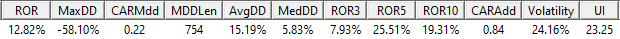 Now, let’s take a look at the first All Weather portfolio historical performance. Remember this portfolio holds 13 ETFs, rebalances monthly, and uses a static allocation based on the average ETF volatility.