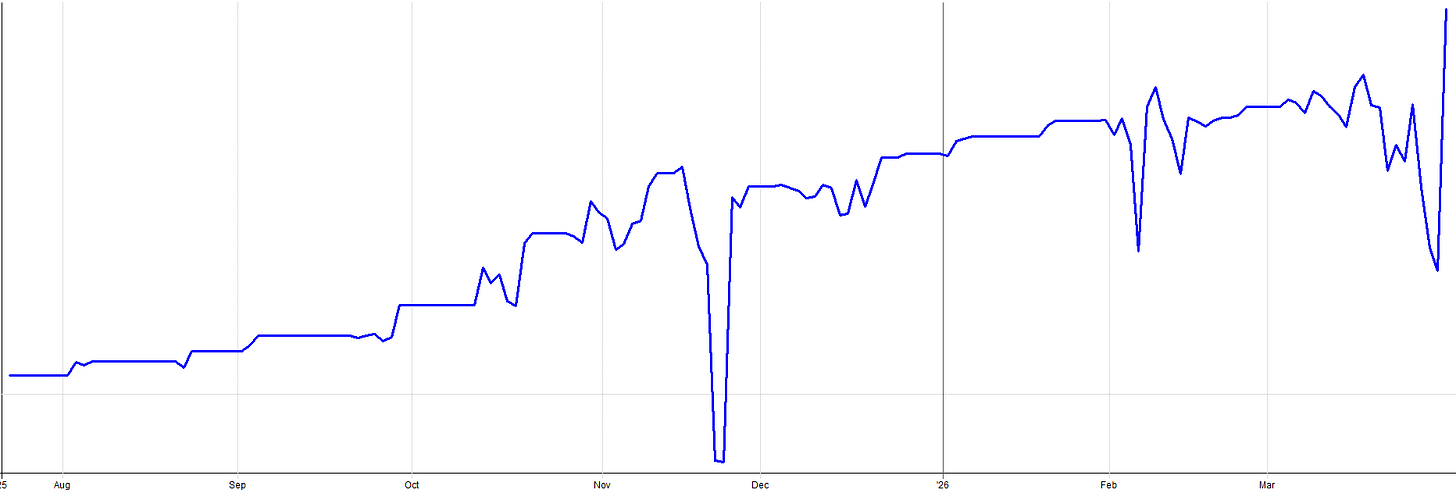 A little lumpy, a little bumpy, but real results. Being able to take the ups and the downs is just part of the game we play. So far, I’ve been very happy with the performance from these systems which I deployed live in August of 2025.