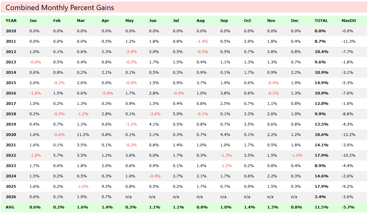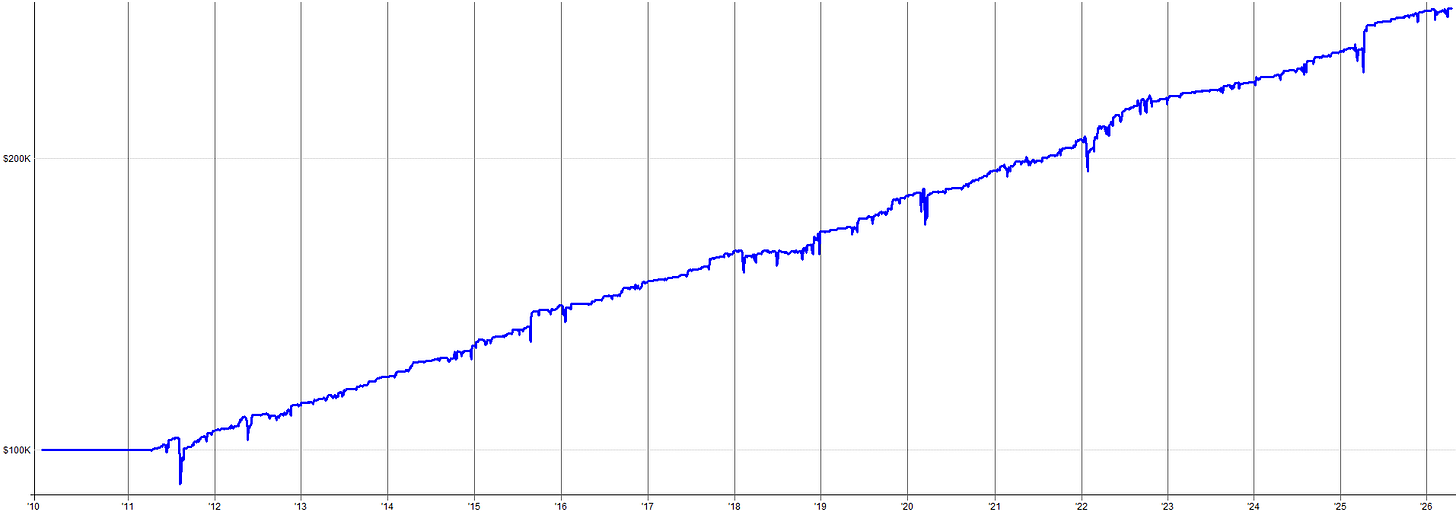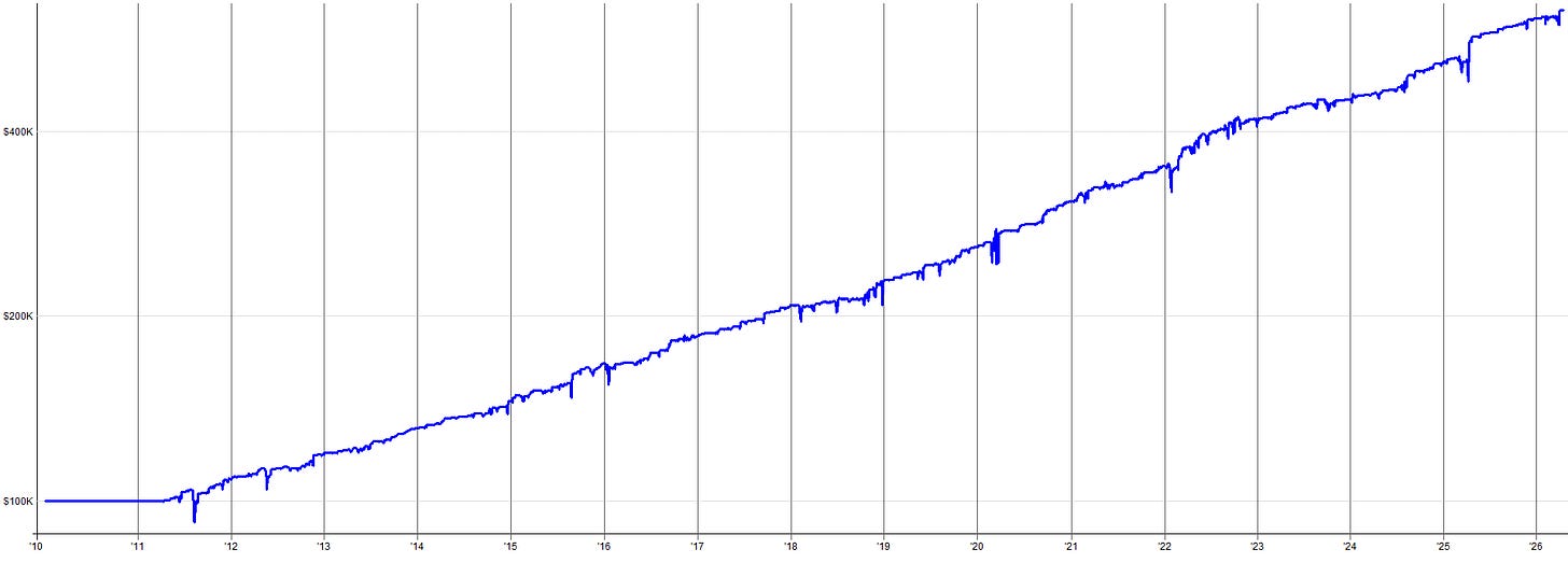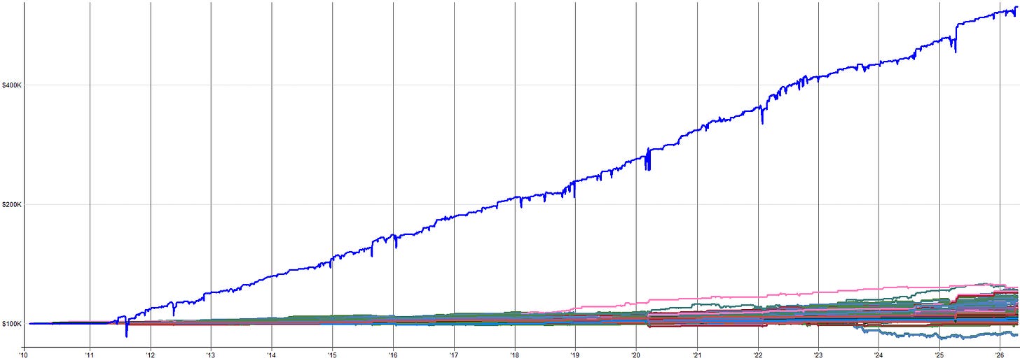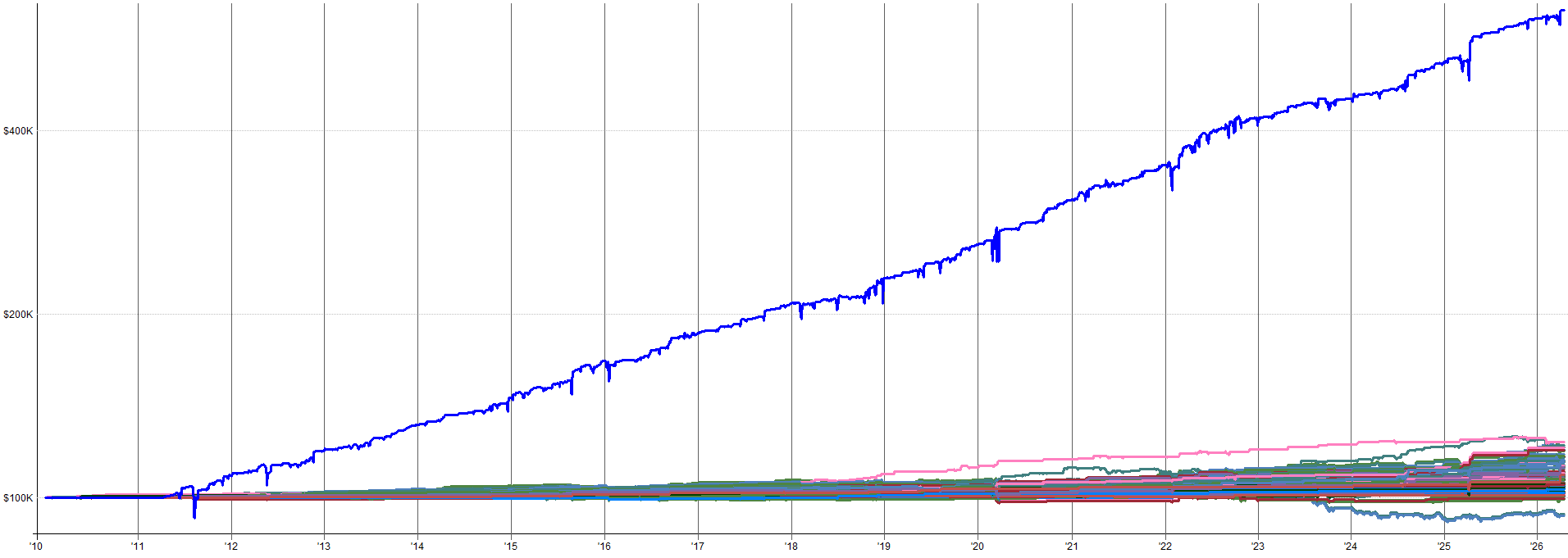 Four systems beat one. Not because any individual system is exceptional, but because when you combine four genuinely uncorrelated approaches to measuring “oversold,” the portfolio effect takes over.