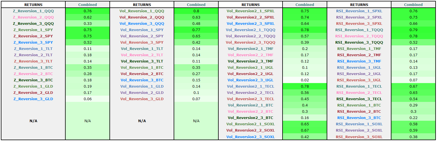One day, bonds may save this mean reversion mini-portfolio when everything else is struggling. And when you look at the combined four-system portfolio as a whole (next section in this article), the bond drag barely even shows through to overall results. Today’s laggard may be tomorrow’s star. I intentionally selected this basket of ETFs to be diversified across assets.