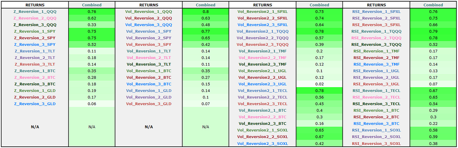 This is the quantitative proof behind “why run all four systems and not just the best one?”. It is not just a feel-good argument about diversification. These numbers show that there is massive benefit to running as a mini-portfolio and take advantage of all the different measurements of oversold into account on different assets. This makes it so return streams that don’t move in lockstep.