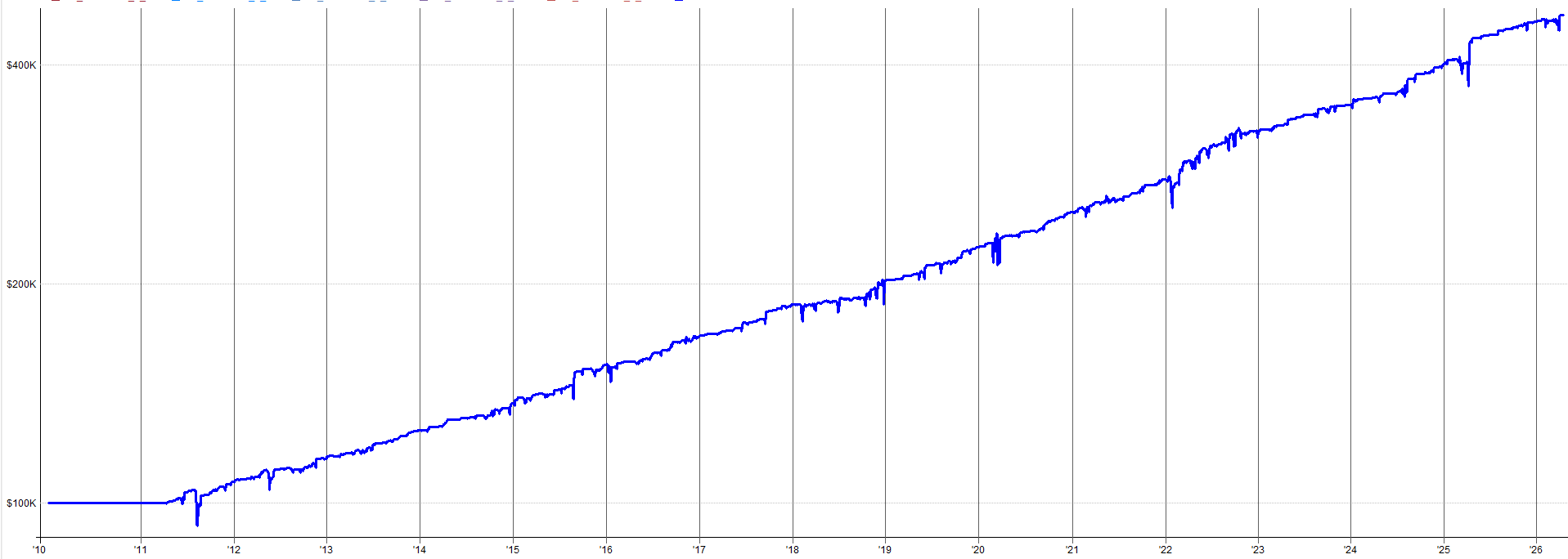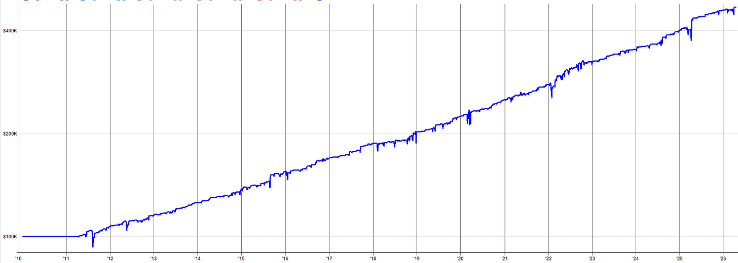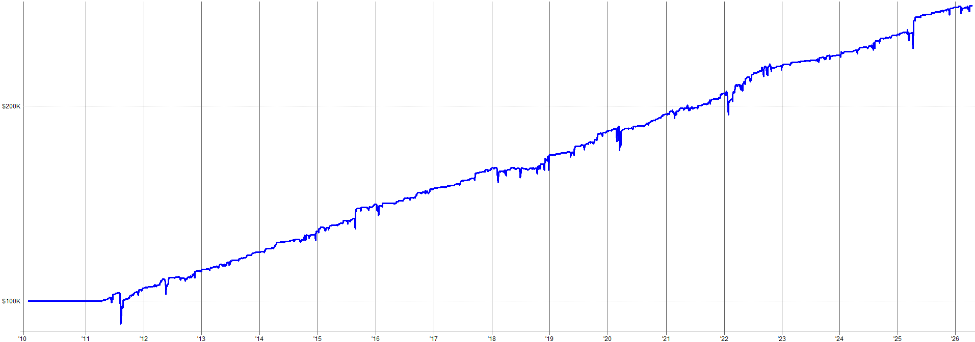 As the account grows, I will increase sub-entries from 3 to 4 to 5 or more, and keep adding more mean reversion systems to this mini-portfolio. Three sub-entries is the sweet spot for my current capital base. It’s enough granularity to capture the average oversold price, but not so many that each sub-entry is “too small to matter” and I get eaten up by commission costs.