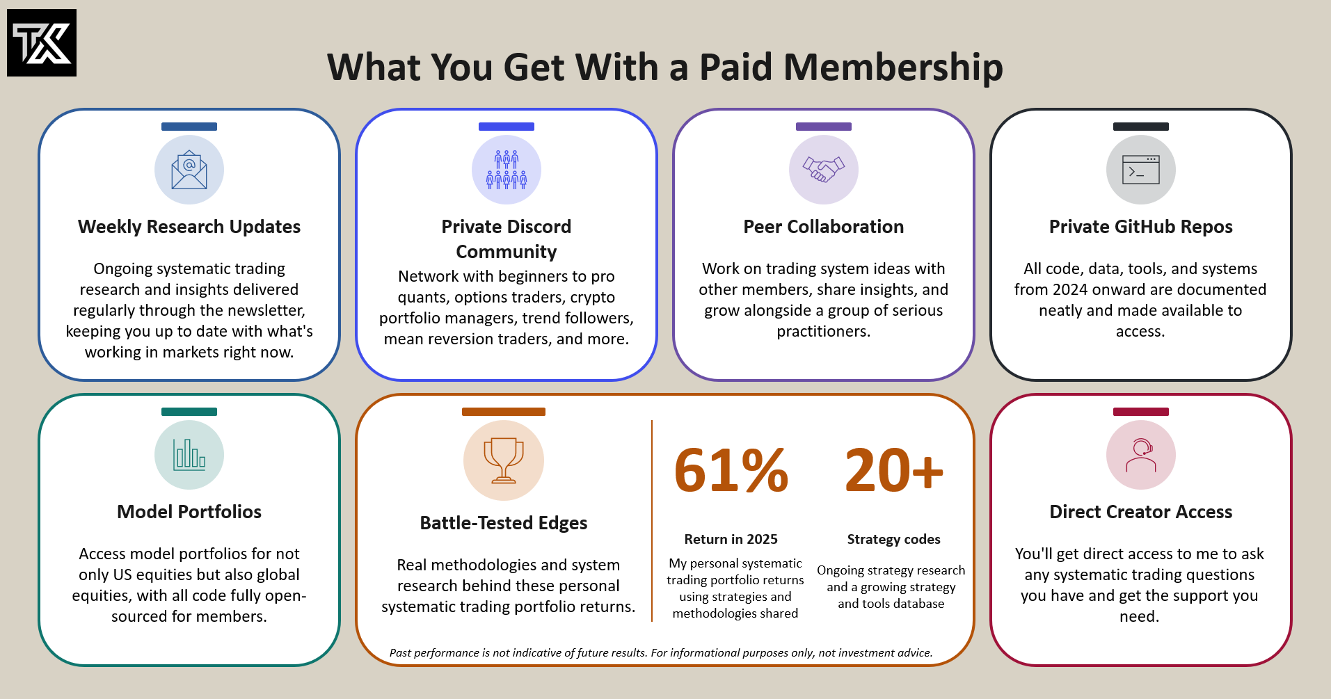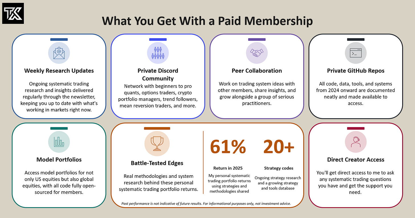 Welcome to the “Systematic Trading with TradeQuantiX” newsletter, your go-to resource for all things systematic trading. This publication will equip you with a complete toolkit to support your systematic trading journey, sent straight to your inbox. Remember, it’s more than just another newsletter; it’s everything you need to be a successful systematic trader.