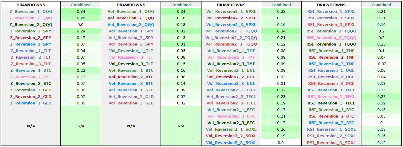 Combined Mean Reversion Mini-Portfolio Drawdown Correlations: