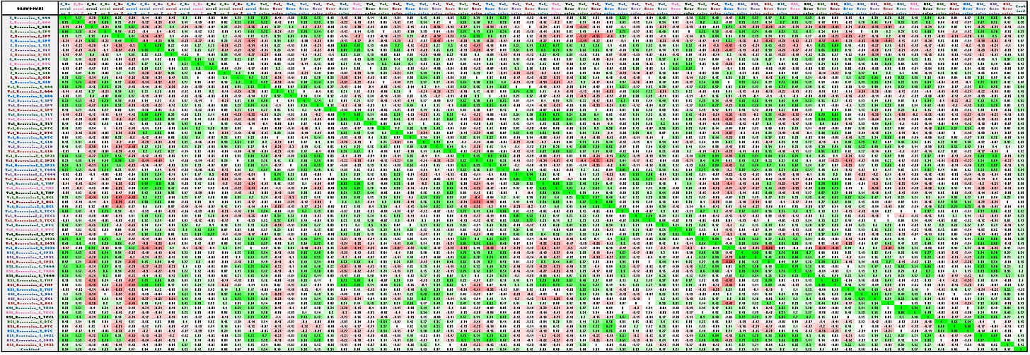 Below is the correlation matrix of daily returns and drawdowns between the four systems. I could not get this entire correlation matrix into an image that was actually readable so you’ll have to rely on the colors. I’ll upload this excel sheet into the GitHub for you to check out if you’re interested.