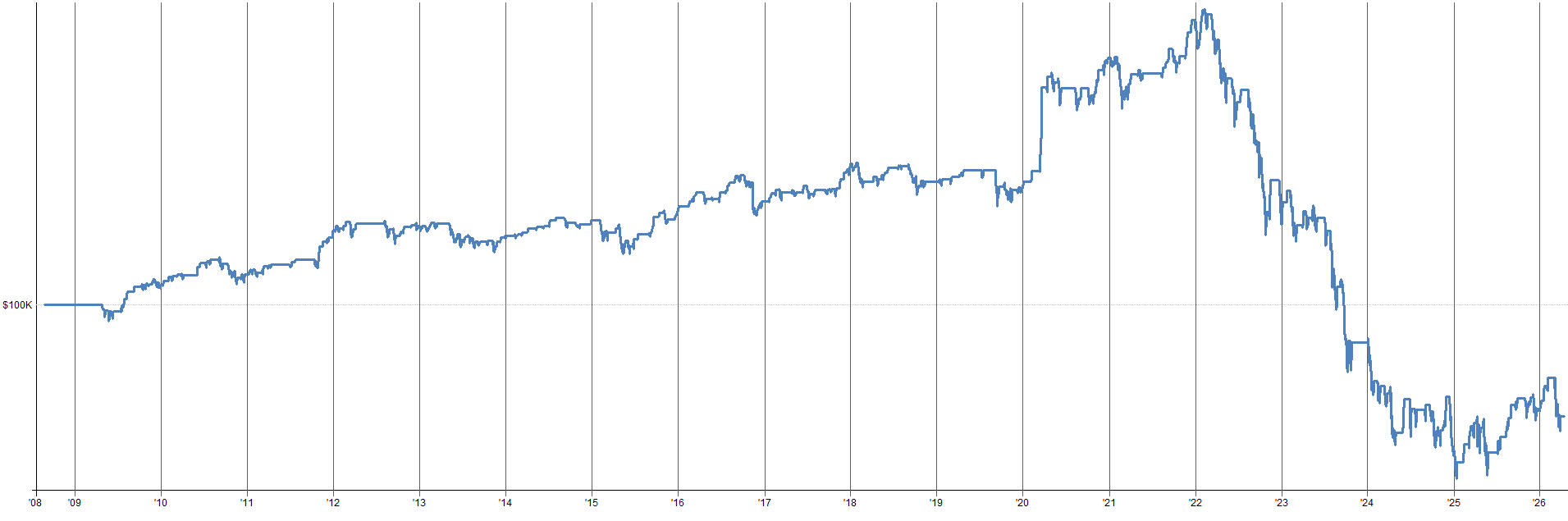 This is what makes the portfolio dynamic, not just four systems bolted together. It provides an adaptive layer that reduces allocation to strategies that have been underperforming recently, without you having to manually decide which system or asset to drop.