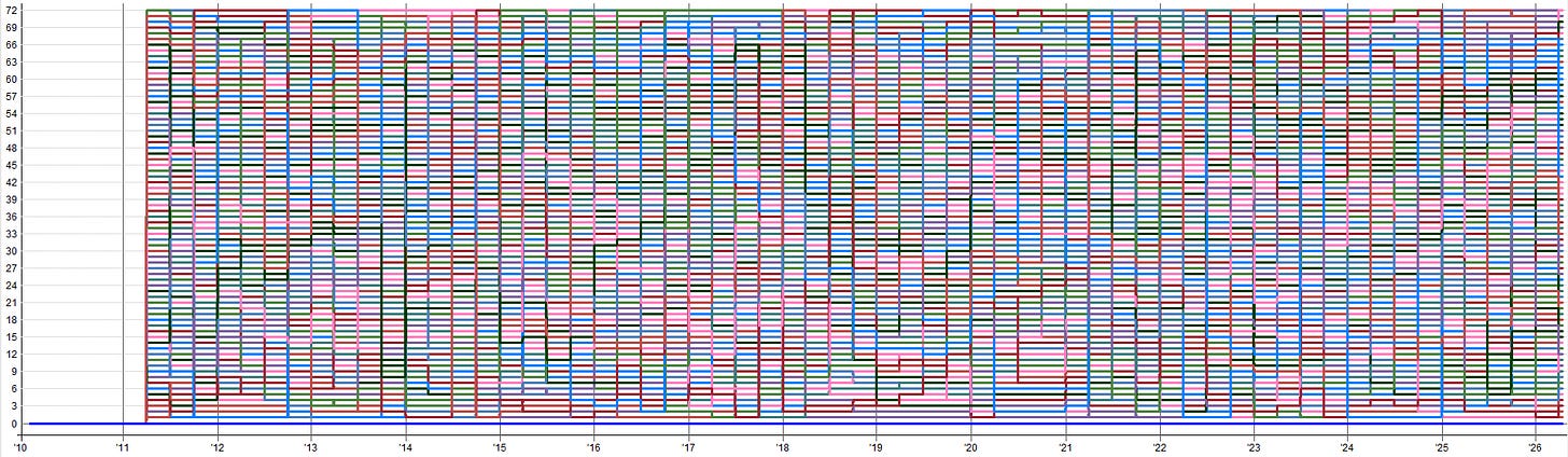 You can see sub-entry one on bonds on the very bottom of the plot (blue), underperforming everything else. But there are many other assets and sub-entries way outperforming the bonds first sub-entry equity curve.
